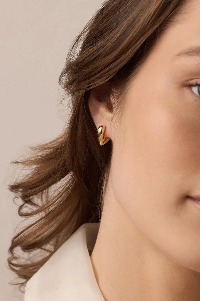 The perfect mix of edgy and sweet, these 18k gold plated huggie hoop earrings feature a heart design. Their size and fit makes them ideal for first or second piercings, letting you stack them effortlessly alongside other hoops and studs to create a look that’s uniquely yours.