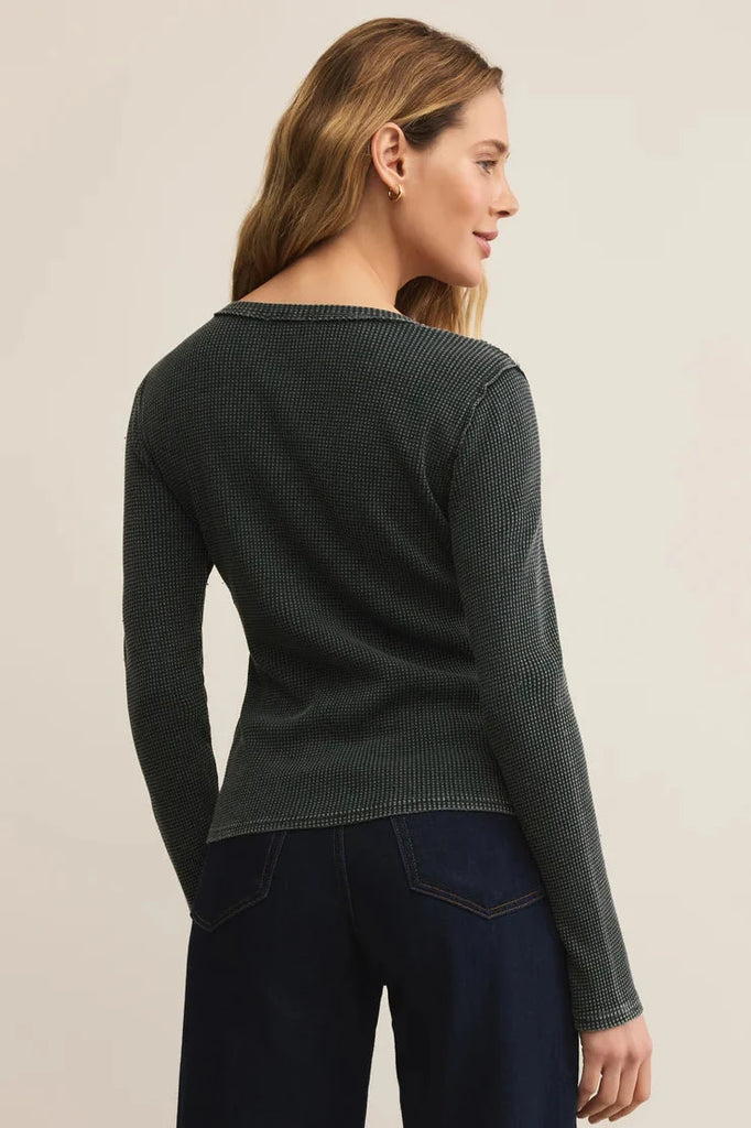 This fitted thermal is all about ease, crafted in soft waffle knit that feels cozy yet lightweight. Wear it solo for a clean look, or layered when the days cool down.