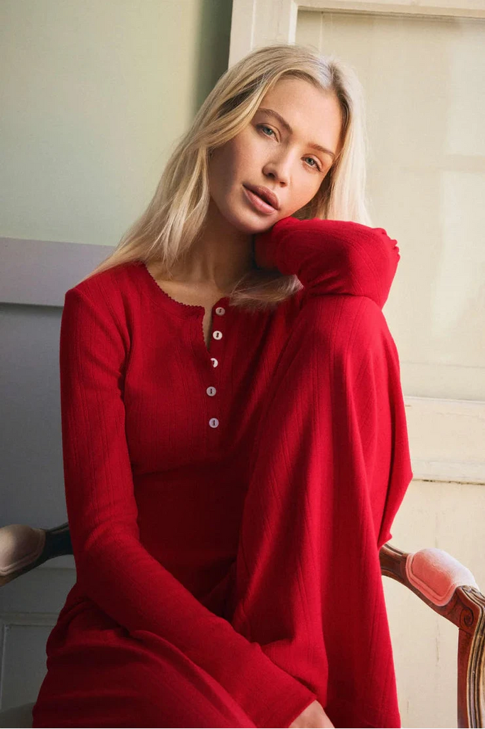 Delicate pointelle knit meets a classic henley design for a touch of texture and softness. Its fitted silhouette makes it an easy base layer or a cozy lounge favorite on its own.