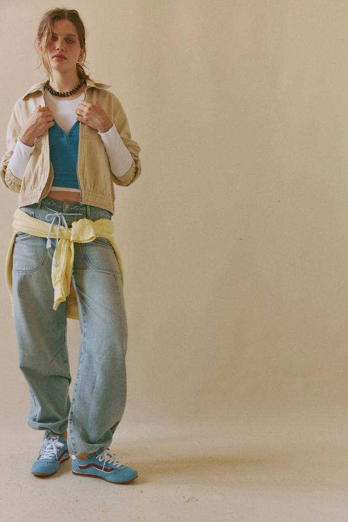The perfect easy pair, these low-and-loose jeans from We The Free are featured in a pull-on style with a drawcord waistband and cuffs for that cool customizable fit.