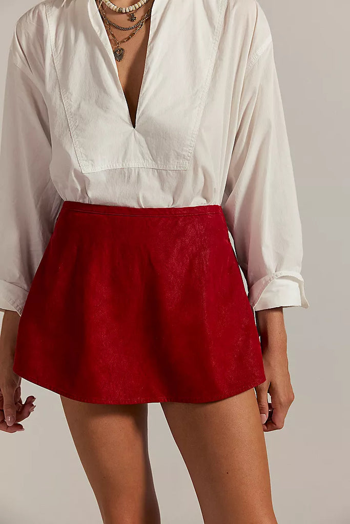 So cool with western-inspired charm, this classic skort features a soft, vegan suede design with shorts lining at the back and effortless, pull-on design.