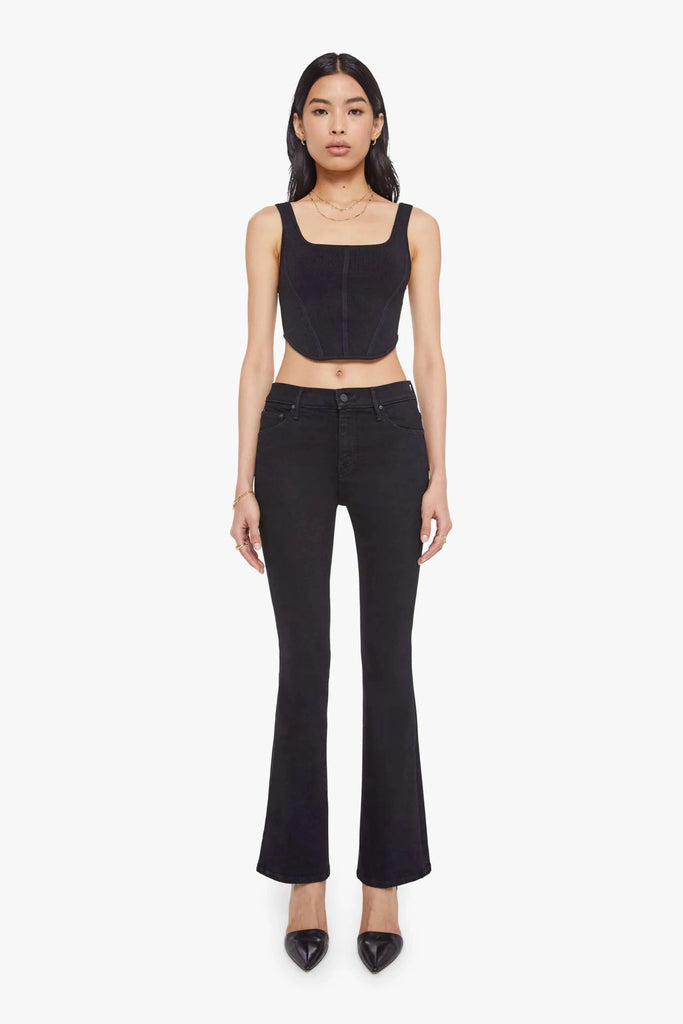 Sweet dreams. This cult-favorite flare jean has a mid rise with a 31-inch inseam and a clean hem. Cut from denim with a touch of stretch, Nighty Night is a dark black with tonal hardware.